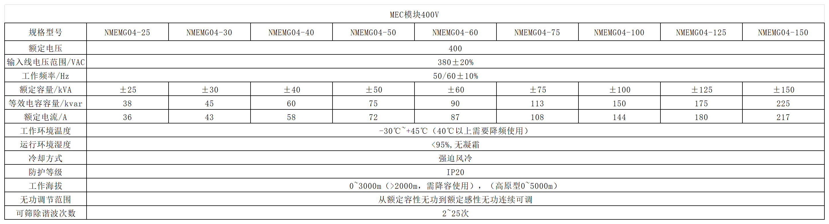 | 產(chǎn)品 | 新能動力MEC模塊 | TSC+APF | 其他SVG+APF |
